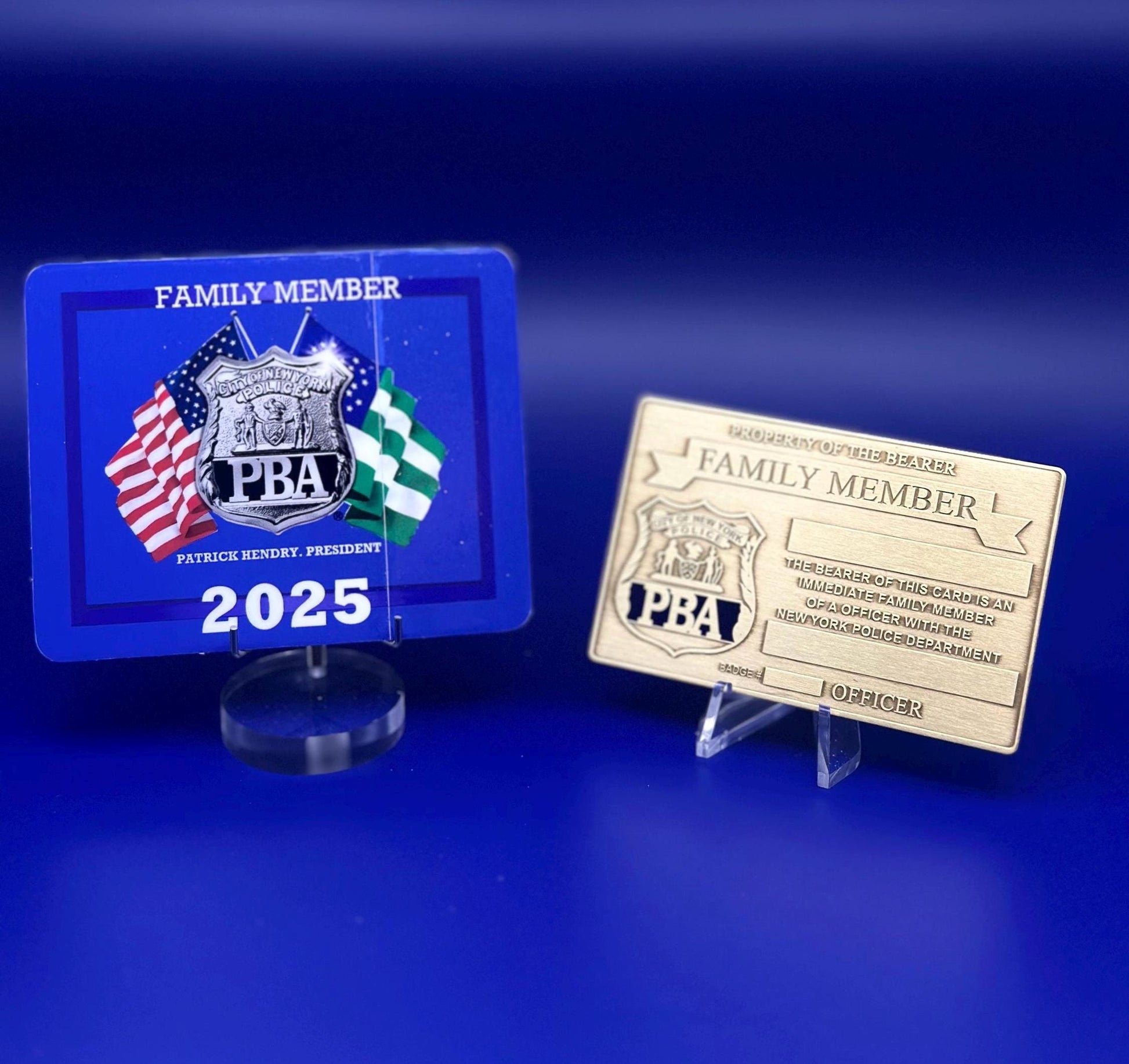 1 lifetime New Gold Metal card NYC PBA officer’s family members and sticker under glass